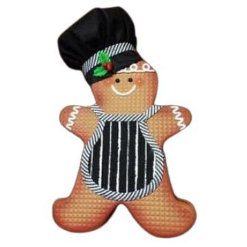 Galleta waffle cocinero mandil a raya negro, 22 cm aprox, cordón dorado para colgar. Producto hecho a mano, elaborado en México.